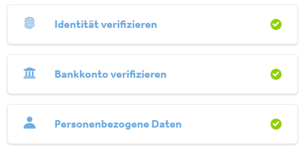 Solange Sie nicht alle 3 Schritte abgeschlossen haben, können wir Ihr Konto nicht endgültig verifizieren. Achten Sie bitte darauf, dass Sie den gesamten Verifizierungsprozess durchführen.